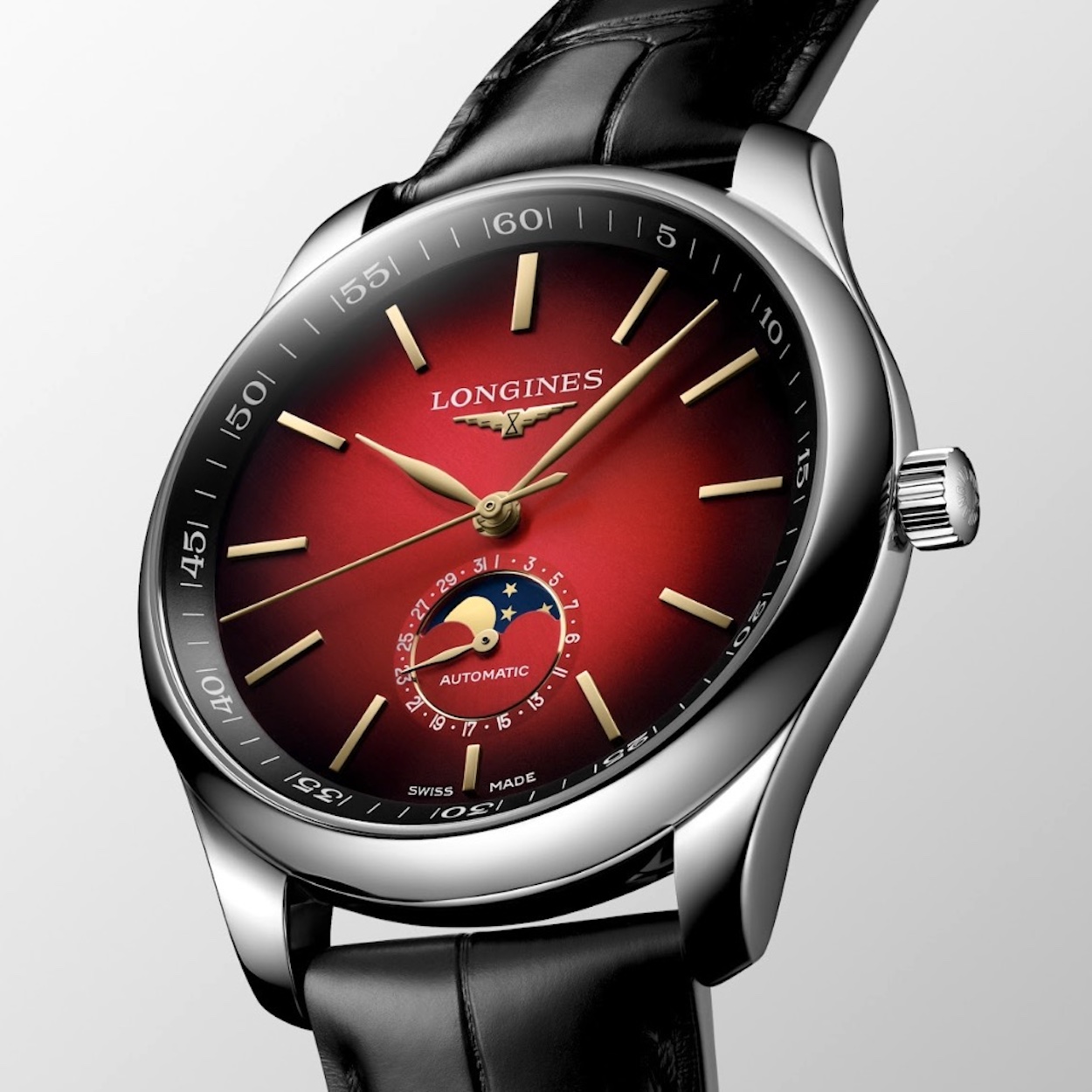 Limitado a 2.026 unidades, o modelo se destaca pelo mostrador vermelho com acabamento escovado em raios de sol e efeito degradê, associado à ideia de renovação e novos começos. A caixa de aço inoxidável de 42 mm abriga o movimento automático L899.5, equipado com espiral de silício e reserva de marcha de até 72 horas, garantindo precisão e estabilidade no uso diário.
