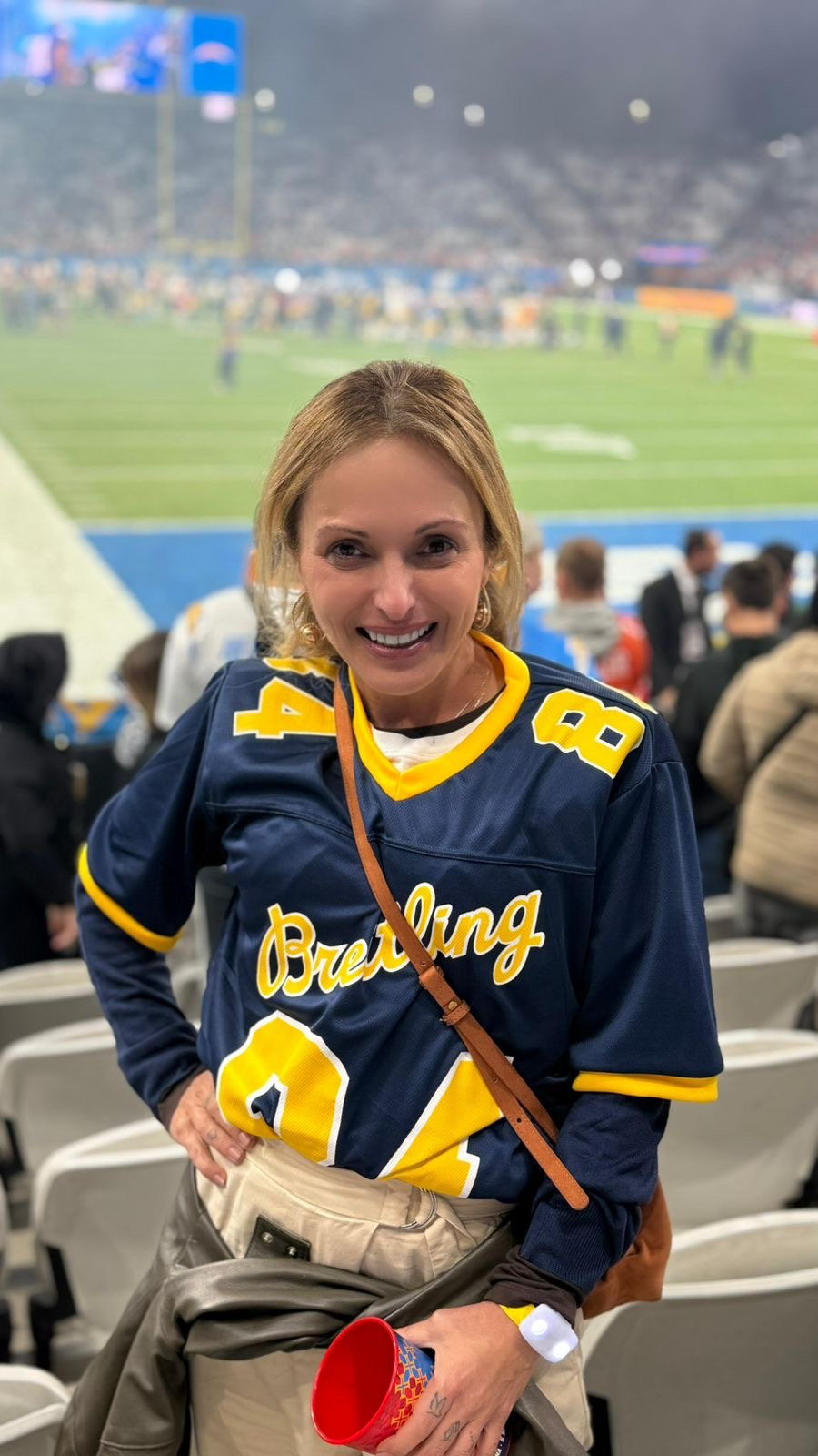 Quando Pedro me mandou uma mensagem perguntando se eu gostava de futebol americano, respondi na lata: amo. Ele falou que a Breitling havia convidado o MM para a NFL e se eu queria fazer a cobertura. Lógico que respondi “SIM”.