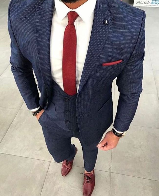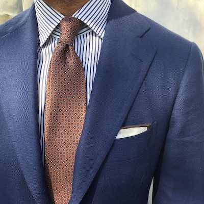 Agora, essas não são as únicas opções, claro. Por exemplo, eu já vi looks incríveis com gravata verde, gravata rosa, gravata roxa, etc. Só que, com elas, é mais perigoso errar na escolha do modelo. Com uma azul marinho, por outro lado, não tem erro. E as avermelhadas também são fáceis de harmonizar com o look. Aí com o tempo, conforme você for pegando experiência na combinação de ternos, gravatas e camisas, você pode ir se arriscando, se quiser, em modelos de outras cores.