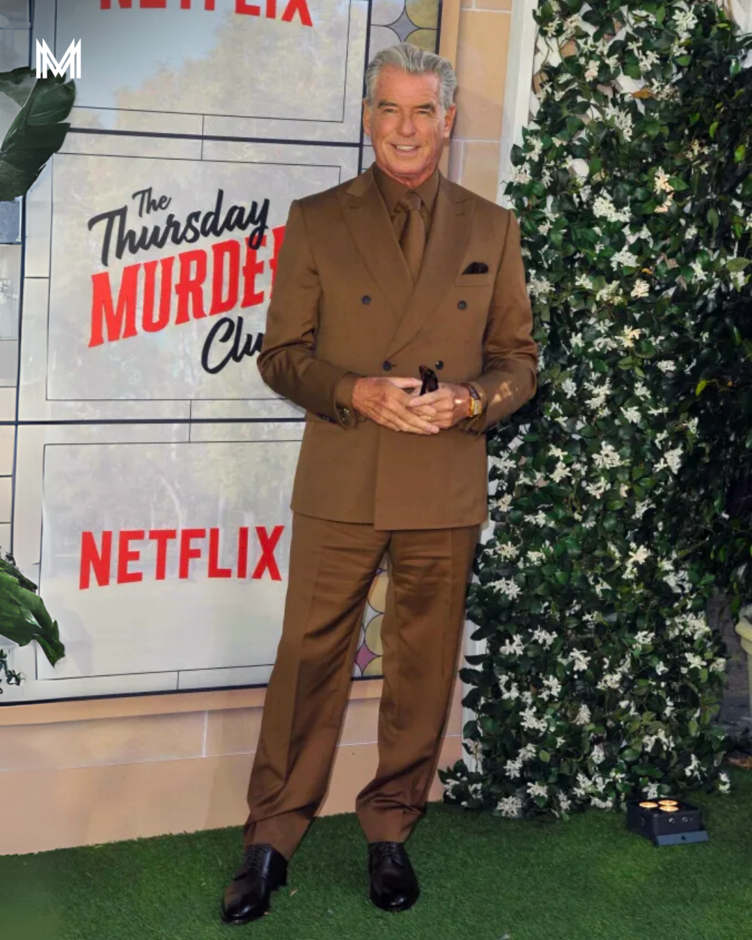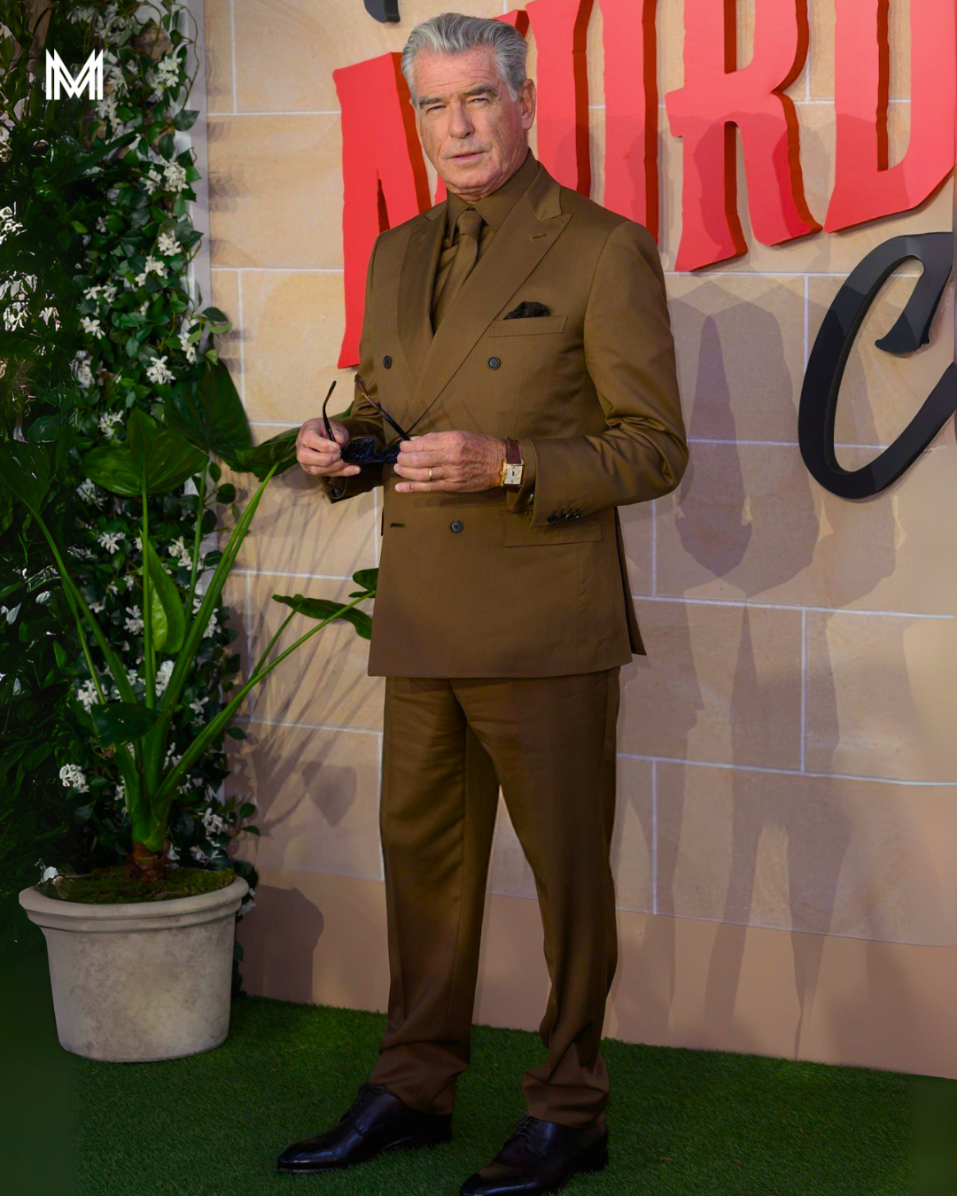 Nosso look do dia é de Pierce Brosnan. Na première de The Thursday Murder Club, o ator apostou em um traje que mesclou tradição e ousadia.